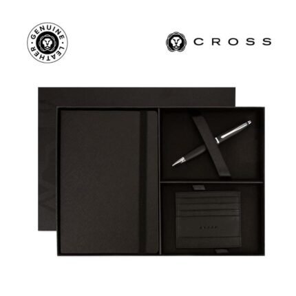 A premium gift set featuring a stylish journal, elegant keychain, and sleek metal pen. The journal includes 160 pages of 70gsm paper and a secure magnetic closure, perfect for everyday notes and ideas. The metal pen and keychain come in matching color to create a concise, elegant gift box.